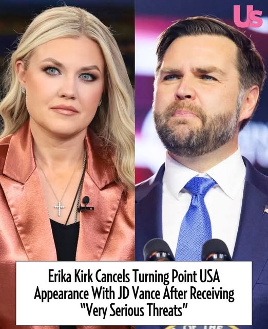 Erika Kirk canceled an appearance at a Turning Point USA event alongside Vice President JD Vance amid alleged security threats. Kirk, 37, was scheduled to
