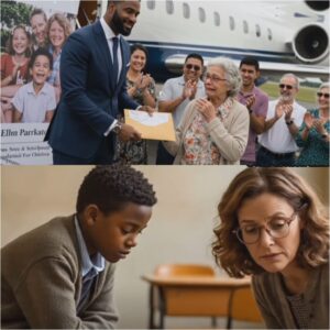 Confused, she followed him. What she saw made her heart stop. In the middle of the dusty school field, a sleek white private jet had landed, its wings gleaming in the sun. Teachers and students crowded around in awe. The door opened, and out stepped a tall man in a sharp suit. He wore sunglasses, but when he removed them, Mrs. Parker’s breath caught.