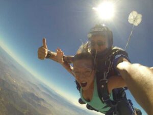 I started running and decided to train for a half marathon, something I had never done before. I found joy, confidence, and a sense of accomplishment through this. I started working out at a brand new fitness studio. I found myself falling in love with fitness and all that came with it. My body and mind changed the more I showed up. I was finally doing things for me, taking care of myself, exploring different things, learning about myself. These are the things I never had time for as I was constantly cleaning up the chaos and instability he created. You don’t get time for this when you’re searching for the truth, or trying to figure out where the ‘missing’ money went, and how the hell you’re going to pay your bills. I ran my half marathon, I went scuba diving – and I even jumped out of a plane. I was reclaiming myself.