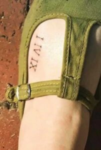 We talked about the tattoo her older sister, Savanna, got a couple of years ago. ‘I IV IX’ placed delicately on the top of her foot. For those of you that aren’t up on your Roman numerals, that’s 1-4-9, which was my husband’s police badge number. I couldn’t think of a more beautiful tribute. In fact, it still takes my breath away.