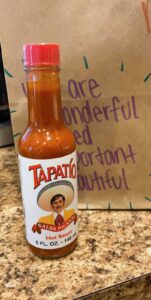 When I got home, I realized the writing on my bag said, ‘You are wonderful, loved, important, beautiful.’ I cried. No shame. Then I took the food out and my box said, ‘Thank you for being you and making my day! Sending love your way!’ and there was an ENTIRE bottle of unopened hot sauce in the bag.