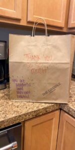 There was some writing on my to-go bag, but I didn’t pay much attention to it. I thanked her again, grabbed my food, and headed out the door.