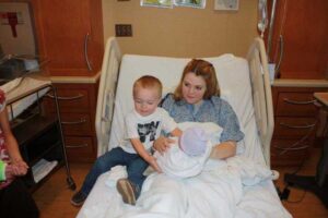 Our fourth child ended up being just over 6 weeks early due to complete Previa. We had a 3-year-old, 2-year-old, 10-month-old, and a newborn. Surprisingly, I don’t remember life being that hard back then. I loved being a mother and after three boys, I was thrilled to have our first daughter.
