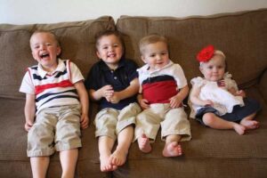 Six months later I got another positive test. I was both excited and scared. Thankfully, that baby stuck and in March of 2010, we were blessed with our first child. The delivery went well and we continued with life as a family of three. Sixteen months later, our second child arrived and thirteen months after that, number three came along. The babies were coming closer and closer and when our third child was only 3 months old, I found out that number 4 was on the way. These babies would be just under a year apart. Upon research, I discovered the term ‘Irish Twins.’ I must admit I was a little embarrassed to announce this pregnancy. ‘What will everyone think? I have a 3-month-old!’