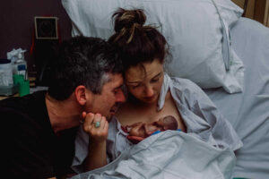 Our perfect Rosie Moon entered our world and took her first breath at 8:14 p.m. I immediately saw her tiny arms and legs moving around outstretched, as if she was searching for me. It was like everything paused. I couldn’t see or hear anything but Rosie. I was desperate to hold her. I just stared at her, tears streaming down my face, reaching for her as she wriggled and reached for me. However, her umbilical cord was too short. I then tore my eyes from her to my midwife, at which point I felt like I re-entered the room. Ned was sobbing too, and my midwife was asking me if Ned could cut the cord so I could hold her. Of course, I desperately nodded yes.