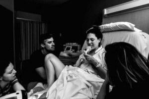 On Monday, December 9, 2019, we arrived at the hospital at 8 a.m. Once our admission was complete, we were taken up to the birth suite. We walked all the way down the long corridor to the room at the very end (away from the noises of crying babies on the ward). Our doctor talked us through everything that would happen, and then she began our induction. We filled the first few hours just talking and resting. It was lovely having our beautiful student midwife, Emily, (who had followed my entire pregnancy and been there every step of the way) with us. Our equally special birth photographer, Lacey, arrived a little later to be with us in this time.