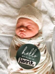 Fifteen minutes before midnight, our little baby boy, Henrik, came into this world. My husband announced the baby was a boy and cut the cord, as I’d imagined. We did skin to skin for a few minutes and then he was taken to get an APGAR score.