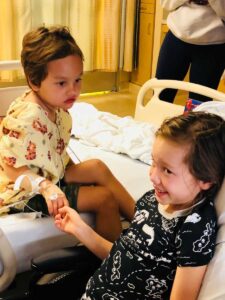 On June 21st, in a different ER, a few floors below from where my daughter was recovering from brain surgery and where she was diagnosed with brain cancer, another doctor pulled a different curtain, looked at my husband and me, and said, ‘I’m sorry, but we found a mass in the back of your son’s brain, the same area as your daughter’s.’ Time stopped at that moment. In a matter of two weeks, our 6-year-old daughter and 4-year-old son began their fight for their lives. Both of our babies had cancer, medulloblastoma, a type of aggressive brain cancer.