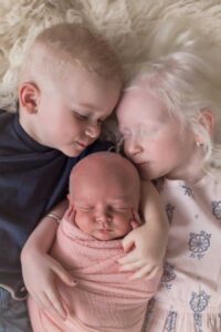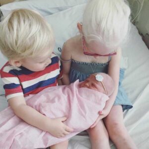 Reagan was a relatively easy baby and the two quickly became inseparable. Life moved pretty quickly with all the appointments and therapies Arliyah had. We soon realized the older she got, she actually did have some amount of vision. She was still classified as legally blind but she could see enough to get around pretty well. I had always wanted a big family and after two kids, I wasn’t done. Soon enough, we were pregnant with our third child. Because Chayd and I carried the gene for albinism, any child we had together would always have a 25% chance of having albinism. Throughout the pregnancy, I knew the baby would have albinism. I kept saying to myself, ‘If she does have albinism, then she and Arliyah were meant to do this together.’