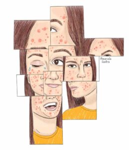 Something I am very proud of is my on-going partnership with a very talented illustrator named Marcela Sabiá, who I commission to create acne and mental health awareness illustrations to help get many of my ideas and messages across to my audience.