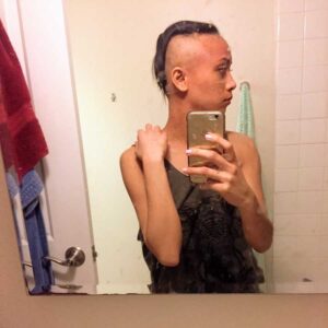 The next morning, I woke up with a pile of tiny hairs all over my pillow. I don’t know if it was because I was dancing all night at the wedding, or because I had a few drinks, but basically all my regrowth fell out and my hair was falling out FAST again. I was devastated, frantic, and a crying mess. My sister came with me to a wig shop where we found another shorter and thinner style wig that I could still wear to my new job and look similar to before. In a span of a week, about 90% of my hair fell out in patches. I knew that this was for sure Alopecia Areata progressing to Alopecia Totalis, and there was nothing I could really do. There was and still is no cure, and I did not want to endure painful steroid shots to the scalp.