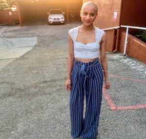 After that first night out, it took about half a year till I felt normal and stopped having bad days or being bothered by other people’s reactions towards me. I had a ‘fake it till you make it’ mentality and kept my chin up the whole time, but it was hard the first few months. I did feel free, but I was incredibly self-aware and self-conscious of the stares and comments I received in public all the time. I observed that many people felt uncomfortable with others that look different and feel the need to alleviate those feelings by sharing a relatable story or using humor. I know that they all mean well, but those responses end up somehow invalidating my experience with alopecia and were hurtful. I mostly would respond with an educational approach as most people hadn’t heard of alopecia, but inside I was always embarrassed, angry, put on the spot, and felt as if I could not live a normal life; instead, I had to deal with these responses and the constant staring. I was able to handle all the reactions for the most part, but there were a couple hard days that I would cry from frustration and have to vent, mostly to my boyfriend.