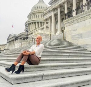Based on the lack of education and awareness, and even my own ignorance prior to developing alopecia, I decided to get involved with the National Alopecia Areata Foundation (NAAF). I quickly joined their legislative liaison group to advocate towards meaningful policy and change. This shift in focus helped me feel like I was contributing to the greater good for the alopecia community and would hopefully change the stigma on hair loss. I got to meet more people with alopecia online and through this organization, was advocating to my local congress men and women, and fundraising for NAAF! I even went to Washington, DC, to advocate on Capitol Hill with NAAF, and was asked to be a featured speaker at the 2019 NAAF conference in Seattle. All these efforts in advocacy really showed me the positives of my alopecia and changed my outlook on this disease. I slowly developed way more confidence as a bald woman than when I had long hair.