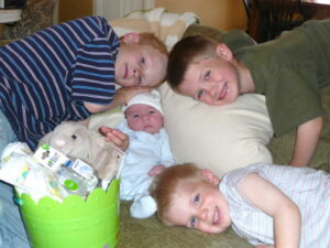 My biological boys are protective and caring of their little brother, and also adore their older sister, where they each continue to build their own, unique relationship with her.