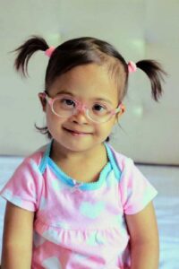 I still recall that those first few months were all about doctor visits, checkups, cocooning with her, and understanding her needs. Thankfully, she doesn’t have any heart issues. But, yes, she has major eye issues like nystagmus and strabismus accompanied by myopia. For this reason, she got glasses along with a regular patch therapy to help with her eye issues. As she was and still is severely hypotonic, we started her physio therapy within a month of her coming home.