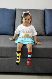 Of course, there are days when things don’t go as you plan. I recall she started standing and walking with support at the age of 2 but it took her another year to walk independently with a lot of physiotherapy sessions and practice back at home. There are days I have to struggle to keep going and make her learn things. Being a mom to a child with special needs is definitely challenging and sometimes people around you make things much harder. But when I think from my daughter’s perspective who’s going to therapies, wearing SMOs (ortho shoes) and glasses at such a tender age, all my hardship and pain feels less to me. She always inspires me and pushes me to go easy on myself and not give up. I love her for who she is. I accept and embrace her abilities and work together on her shortcomings. I celebrate her for what she is instead of thinking about what she could have been.