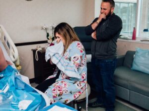 On the morning of Sunday, September 9th, Rachel started having contractions and was timing them. They started at about 10 minutes apart, then 8 minutes apart and they progressively got closer and closer together. Rachel called the hospital, and the midwife asked her to get in the tub to see if contractions would slow down – they didn’t. Around noon that day, I drove Rachel to the hospital with my mom and sister to get checked out at the hospital. At this point, Rachel was 37 weeks pregnant. The midwife checked Rachel and she was 2cm dilated and about 50% effaced. We decided to walk the halls of the hospital for 2 hours to see if she progressed at all. Four hours would go by, with little to no change, so we all headed home. My husband Matt and I decided to stay in town that night at my mom’s on the off chance she would go into labor. And the next morning, we headed home.