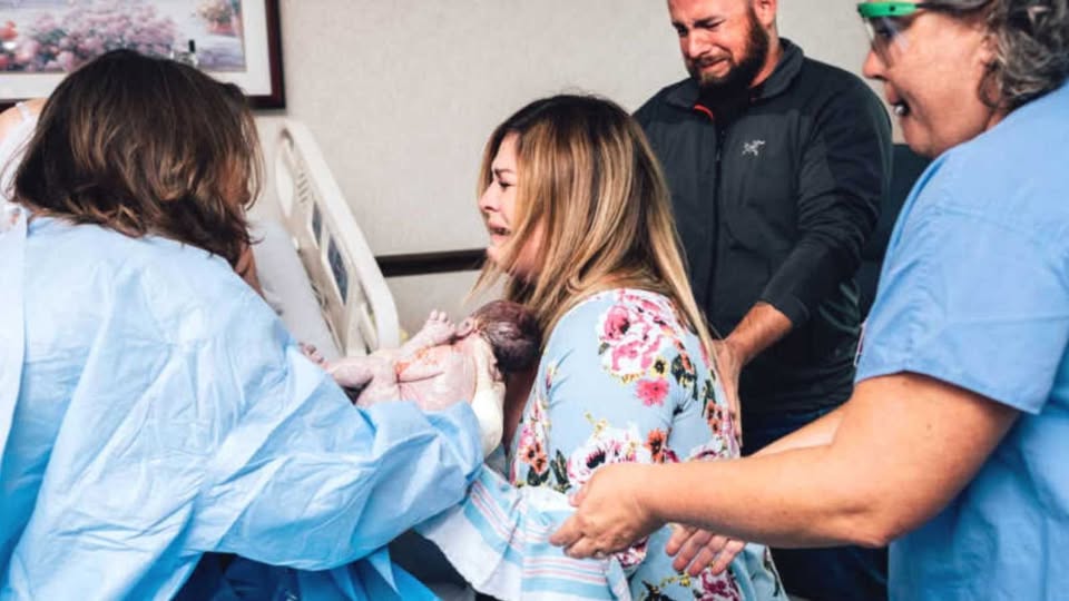 Rachel and her husband arrived at the hospital around 4 a.m. and when they checked her she was 2.5cm dilated. They began walking the halls to see if she was progressing and she was! They checked her again around 5:15 a.m. and she was 3.5cm and 60% effaced so they went ahead and admitted her to the hospital.