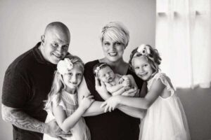 We eventually bought a bigger house with a pool, and then right after my 35th birthday in 2017, we found out that we would be adding an ‘ours’ to the mix. We had our 3rd daughter, Junebug, and completed our family. We had our little blonde bookends, and this brown-eyed baby girl is the perfect caboose.