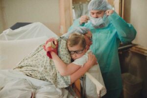 They brought him over to me, he was purply/blue. His eyes swollen shut, curled into a ball, and making funny noises. They placed him on my chest so that we could bond before saying goodbye.