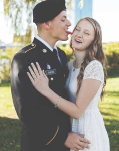Despite being an extremely shy person I got a random burst of confidence and blurted out ‘I can be your date for the rest of the night!’ AJ accepted my offer and we awkwardly danced and talked the rest of the night! A few days after the dance, his sister texted me and gave me his phone number, and we haven’t gone a day without talking up until he went to basic training for the US Army.