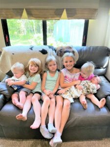 So, Kelby Dean was here. We have her with his middle name because she was our last baby. Our first week home with Kelby was our last week in the house. We moved everything over to the camper with a one-week-old newborn. I brought the bare minimum too. We stayed at the RV park in our town for one week to work out the kinks before heading out. Kinley finished kindergarten and we headed out that weekend.