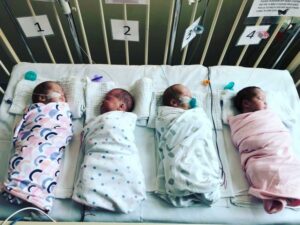 Between 2:28 a.m. and 2:31 a.m. on the August 15, 2018, Quinn Ruby MacDonald, Indie Grace MacDonald, Hudson Joseph MacDonald and Molly Ella MacDonald were born ranging from 2.4 to 2.8 pounds. Although the babies were born with no immediate problems except for normal issues being born so early, they each had a long road ahead of them.