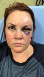 Eventually she was able to get me up, in the elevator, and up to my apartment. When I walked in my front door, I turned sharply to the right, in doing so I lost my footing and fell. I fell face first into a solid wood door frame and eventually to the concrete floor. I can remember every second of this fall. I can feel the force of my head slamming into the corner of the wood door frame and eventually into the concrete, I can still hear the sound of my scull popping when impact was made, I remember that my arms and legs felt like Jell-O – they were twisted and just wouldn’t work. I can remember picking my head up to look at Alexis as she was standing behind me and scrambling and scaping to help me, and all I could see out of my right eye was flesh. Swollen flesh. The impact on my head had created a hematoma so large on my forehead that it covered my right eye. Immediately, my next thoughts were to get it together so that Alexis would leave my apartment and I could get a drink.