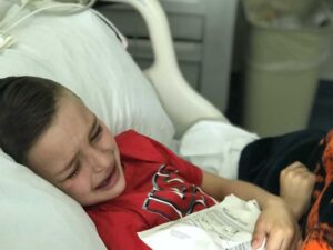My 6-year-old son Nixon had been complaining of leg pain for the last few weeks, and we had been doing everything we knew to help his growing pains. He is just like his older brothers, Drew, who is 11, and Hudson, who is 8. They are always playing sports and Nixon could be found at recess either playing soccer or football. He was just finishing up basketball and baseball season and after weeks of putting it off as growing pains, my husband Nick and I decided to take him in.