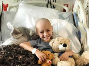 My husband and I quickly made arrangements for Drew, Hudson and our 3-year-old son Jett, and headed to the hospital. Nixon had packed his backpack full of stuffed animals, his vet kit, his iPad and army coloring sheets. He was admitted right away to the oncology ward and had blood work sent to a lab and an X-ray that night. The following morning he had a CT scan, an MRI, a bone scan and was prepped for surgery. The doctors were going to do a bone biopsy to see if his tumor was malignant or not. They would have a pretty good idea if it was by doing some tests right there in the surgery room.