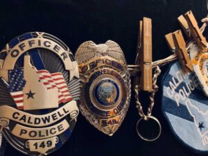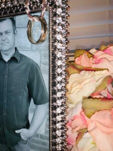 That ring, oh yes that ring. We lost it one time after that incident, some 15 years later when he lost so much weight during his cancer journey that it slid off when he didn’t expect it. That time, I thought it was lost forever, but like true love, we found it again. It sits safely now in a shadow box I made him after he left us, along with his police patches. It’s mounted on my wall, under the flag that was draped over his casket, a flag that represents the same honor, commitment, and courage that he lived his life by. The same values that he had in our marriage and imparted on me and my children. He left a legacy for us, and while we would much rather have him here, I can’t ever thank him enough for loving us so much that he left us with all the good things.