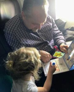By the end of the flight, he was Caroline’s best friend. I’m not sure if he caught the kiss she landed on his shoulder while they were looking out the window.