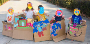 Last year we watched the Macy’s Day parade and they ‘oohed and ahhed’ over all of the floats and big balloons. So I figured, why not create our own parade? I rounded up some boxes from around the house and set them to work creating their own little parade floats to wear down our street on Thanksgiving. We will wave at the pretend crowd and maybe I’ll even play vidoes of people clapping and cheering to make it more exciting. I bought all sorts of crafts for this project and let them each create whatever they possibly wanted. They only had the attention span for one side of the box but thankfully we have a few more days to complete the rest of the sides before Thanksgiving.