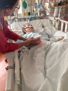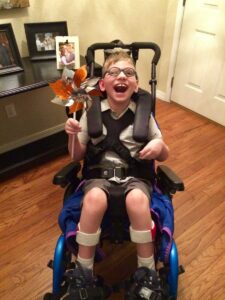I still require a lot of care. I have cerebral palsy because of the lack of oxygen from when I was injured. I can’t do anything for myself. My arms and legs don’t work like they are supposed to. I have such bad reflux I choke almost every day. Sometimes just a little bit, and other times I get so choked I get very scared. My mom and dad are so nice to help me, and it doesn’t scare me as bad when they hold my hand and say sweet things to me. I have a special tube that feeds me through my stomach. I have to be hooked up to a feeding pump about 16 hours each day. I am legally blind, but I love to look at the light. I hurt a lot from painful spasms mostly in my legs. I take a lot of medicine several times a day to help me. That’s a lot for a little guy like me to deal with every day. Don’t you agree?