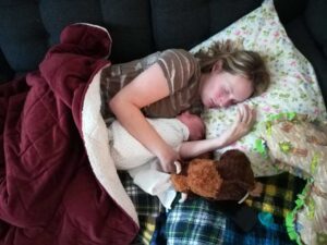 “In late February of 2019, at 34 weeks pregnant with my third baby boy, I fell ill with the flu. Because of my pregnancy, I was especially vulnerable. My uterus was crowding my lungs, which meant although I was coughing almost constantly, I wasn’t able to effectively work the fluid out. Within a couple days, I had pulled a muscle in my abdomen. It sent such a splitting pain down my enormous belly every time I coughed, so I started suppressing the coughing.