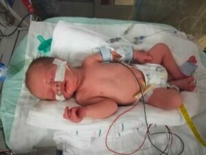 My lungs still had a lot of healing to do, but I didn’t need to be intubated or sedated once the trach was in. I began weaning off the heavy sedatives and pain killers (which caused all the crazy paranoia, nausea, shaking, muscle paralysis, and other side effects), and was able to learn about my baby. I was devastated I had missed those precious moments after birth during which we would have bonded. I was heartbroken I wouldn’t be able to nurse him. I wept and begged the doctors silently, ‘Please downgrade me out of the Intensive Care Unit so I can finally meet my baby!’ (Kids weren’t allowed in the ICU.)