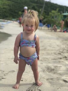 Scarlett is now three-years-old. She loves to play with her friends and siblings. She loves gymnastics. She enjoys going to preschool. Scarlett uses over one hundred signs and she knows even more. Scarlett can talk. She is practicing making her speech clearer in therapy. She loves playing on the beach and swimming. Scarlett is known on Instagram for applying her own lipstick every Tuesday, now known as ‘Lipstick Tuesday.’ Scarlett is smart. She knows her colors. She can count to ten. Scarlett makes me proud every day. She is a compassionate and loving human. We are truly blessed to have her in our family.