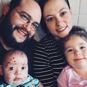 My son was delivered by emergency c-section. The first glimpse I had of him, I noticed he was blue, and his skin was covered with deep purple spots. He wasn’t crying. The whole room was especially quiet. I thought the worst, my heart dropped, but then – he let out the weakest cry. Thank God, he was breathing.