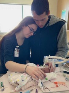 On the morning of March 8, they told us Meredith had a grade 4 brain bleed, severely enlarged ventricles, and tons of fluid on her brain. There was just too much damage. That evening, she gained her wings and went to heaven. I don’t remember much from the following weeks, grieving, watching our other four children fight for their lives, and now we were in lockdown. It was the most isolating experience. We spent all day, every day in the NICU. We were terrified to leave in case something were to happen. COVID restrictions allowed only Jake and me in the NICU. All we had was each other at that point. And for the cherry on top, Jake had just graduated and was starting a new job.