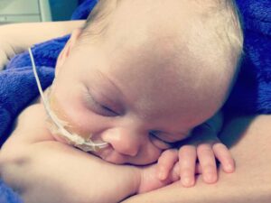 Nataleah’s Nissen fundoplication did not fix her need to vomit, it just prevented her from vomiting. As time went on, her gut symptoms worsened. We saw a GI doctor who was rude and dismissive. I felt hopeless. Nataleah retched (dry heaved, throw up secretions and phlegm) up to 20 times a day, she cried inconsolably, and she ended up vomiting past her fundoplication and aspirating on her vomit. At 7 months old she had a Gastrojejunostomy tube (GJ tube) placed. We saw a new GI, Dr. Zherebetsov, who listened to my concerns, witnessed Nataleah’s pain, and sought answers. We all hoped that the GJ tube would be our answer. Unfortunately, her inconsolable crying continued. I called the GI’s office crying and asked, ‘What’s the point of all these appointments if nobody can help us?’ The next day our GI called me and told me to pack my bags. Nataleah was admitted for testing.