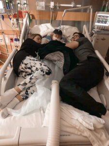 The waiting room was filled with 30 of Finn’s biggest fans as we waited the excruciating amount of time for the surgeons to emerge with the news. We held prayer circles, called the chaplain, and urged friends and family near and far to pray for Finn. When the surgeons emerged, they delivered the news that crushed every bit of our souls – Finn’s brain had minimal blood flow and he was likely brain dead. I ran out of the waiting room as they continued to explain the news to our family and hit the ground. I couldn’t even cry. I just felt dead inside. Like every bit of life had been ripped from me in one instant. Austin followed and hit the ground in sobs. Nothing in the world can ever prepare you for those words. Finn was taken back to the main hospital, and we went to be by his side. I woke the next morning with hope. Finn was still here and breathing. We were no longer relying on the healing of a doctor, but the healing of our Almighty Father. We prayed over Finn, had every chaplain on every shift pray over Finn, and encouraged others to pray for Finn in a social media post that was shared thousands of times. We were not giving up on our boy.