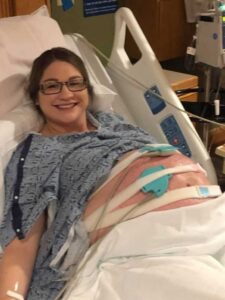 A few seconds later I started to get sick and I felt a gush of something come out of me as I tensed up. I was unsure if I broke open my incision or what happened. I told the nurses, ‘Something gushed out of me.’ When they took my blankets off there was blood everywhere. Next thing I know there are nurses all around me taking blood soaked blankets off of me and weighing them to see how much blood I was losing. Life comes at you fast.