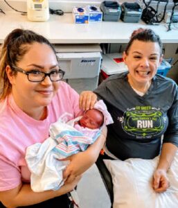 The first baby was born in the tent with me on the phone and the second baby at the hospital.