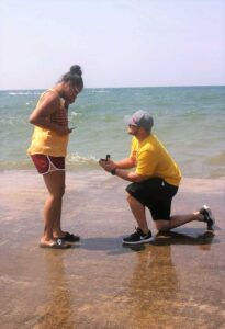 Over the next two years, we found our groove and had a great routine as a family of three. In the summer of 2018, we were preparing to go on our annual vacation with my family. Little did I know Alex and Jaden had gone ring shopping and the two of them planned a surprise engagement in front of my entire family. It was a beautiful day. We all went for a walk on the beach and while I was taking a video of the waves, Alex was down on one knee behind me. I was elated and of course, I said yes.