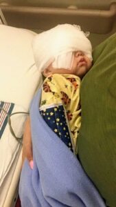 It wasn’t until Mehlani was about 4 months old that we were recommended to a pediatric glaucoma specialist, so he could evaluate Mehlani and check for glaucoma. That was the first time Mehlani was put under anesthesia, so she could get an accurate pressure reading, and an exact look at what damage had already been done to her eyes. That is when we learned that Mehlanis’ drainage canals where malformed and triggering extremely high eye pressure. So high that it was causing her eyes to expand and making cracks in her cornea, the pressure had also started to cause some damage to her optical nerves, but we caught it on time to stop any serious damage.