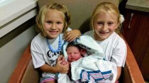 We eventually bought a bigger house with a pool, and then right after my 35th birthday in 2017, we found out that we would be adding an ‘ours’ to the mix. We had our 3rd daughter, Junebug, and completed our family. We had our little blonde bookends, and this brown-eyed baby girl is the perfect caboose.