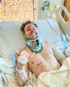 The paramedics arrived and did their thing, stabilizing my neck with a brace and getting me onto a stretcher, all while I was blabbing like an idiot. At one point, I tried lifting my crushed and broken left arm, and a lady with a no-nonsense ponytail quickly said, ‘Don’t move your body if you ever want to walk again.’