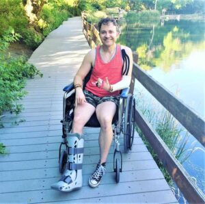 I spent 3 weeks in rehab and started occupational therapy for my hand and elbow and physical therapy for my back and foot. It was painful and bleak and very lonely. Since I was still in a wheelchair, I couldn’t return to my home, which has a lot of stairs. My parent’s home is all stairs as well. This put me in a tricky situation because the rehab facility wanted to discharge me. So, I ended up moving into an assisted living center with all elderly people. That’s right. For the next 2 months, I lived in a facility where I was decades younger than every other resident. It was hot grandma summer.