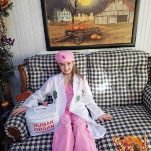 For Halloween, I decided to be a transplant surgeon and hand out buttons and tattoos to the houses I trick or treated at to help spread awareness on organ donation. I was so proud that I was helping to spread the word on my dad and organ donation. I just knew in my heart I can help him… I just knew it!