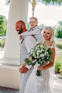 We wed in front of our closest friends, in a beautiful ceremony with personal vows and so much joy. Sometimes I still can’t believe I now have a growing relationship with my mom and sisters, a loving step-dad, a spunky son, and a doting husband.
